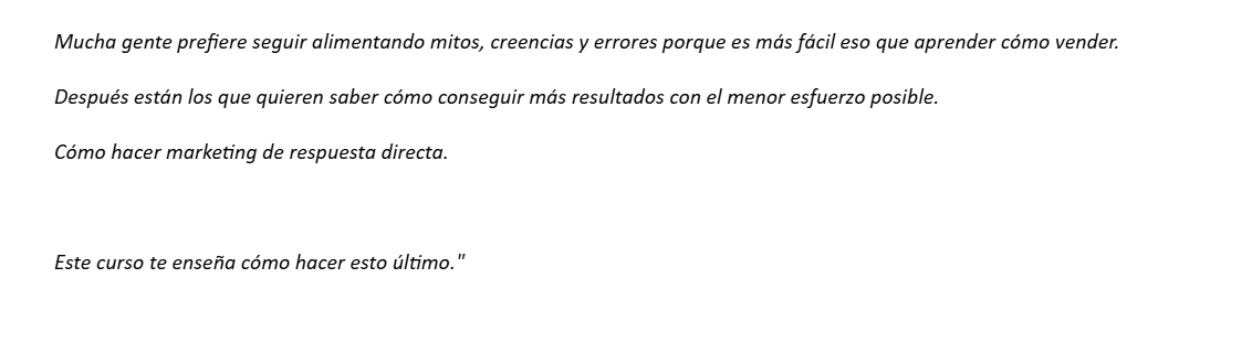 No te explico los 3 pasos para crear un texto de ventas, no.