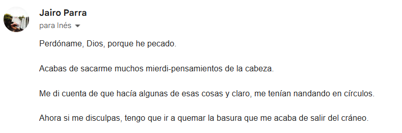En fin, no quiero seguir porque no es hora de hacerte llorar de pena.